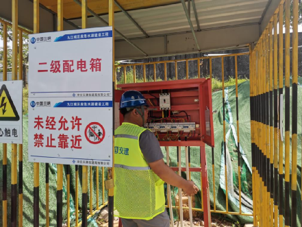 在九江二期城区应急水源建设工程施工现场,电工石朋顶着烈日仔细检查二级配电箱的情况。“天气变热了,检查用电线路、设备要比平时更勤快,防止触电危险。”常年奔走在施工现场,皮肤晒的黝黑,石朋憨厚的擦擦汗,说完继续投入到工作中。